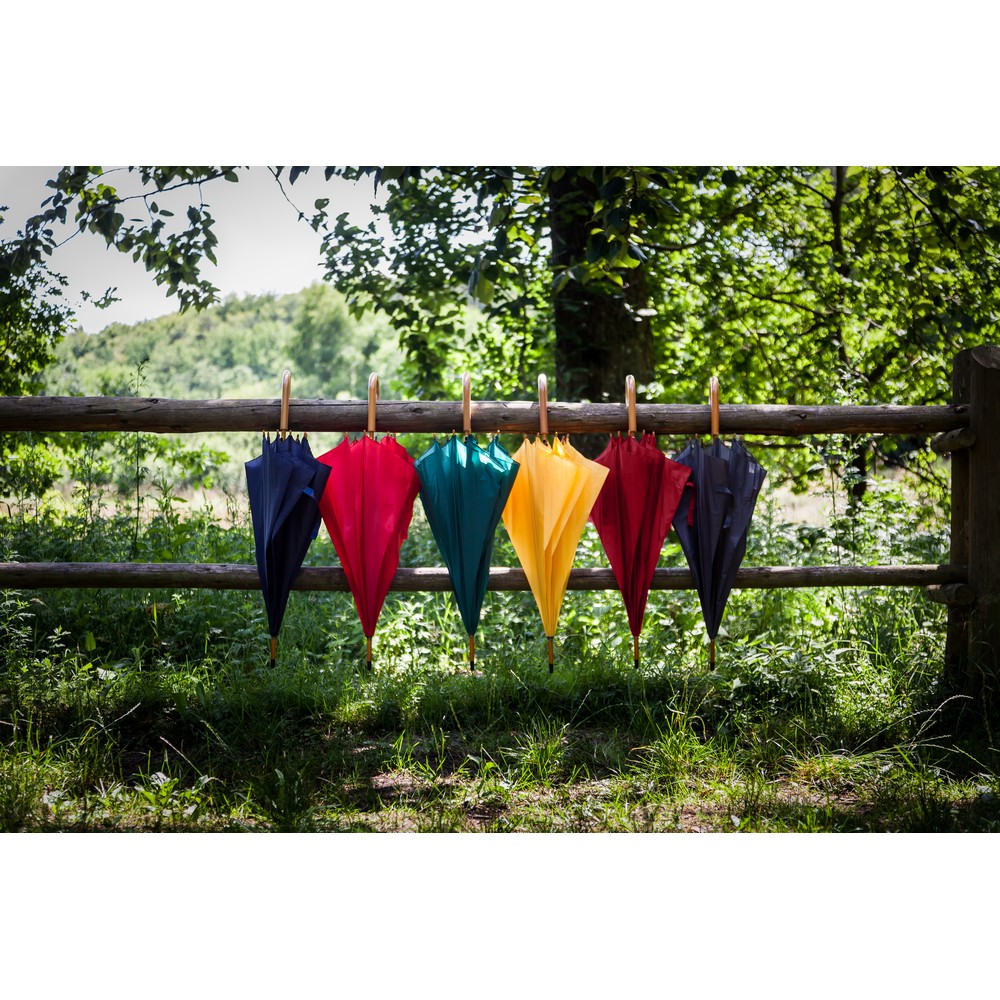 Dank praktischer Features wie dem Holzgriff und der einfachen Handhabung wird der Regenschirm zu einem unverzichtbaren Begleiter im Alltag. So bleibt Ihr Logo stets im Gedächtnis und fördert eine langfristige Kundenbindung. Machen Sie Ihr Unternehmen sichtbar – auch im Regen!